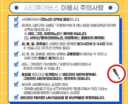 부티 탑승권 할인 및 제휴혜택 안내 부산시티투어버스의 다양한 제휴사들을 통해 탑승권 및 요금할인을 경험해 보세요.